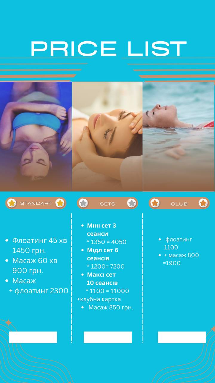 Флоатинг 800грн. Флоатинг+масаж 1350 грн.